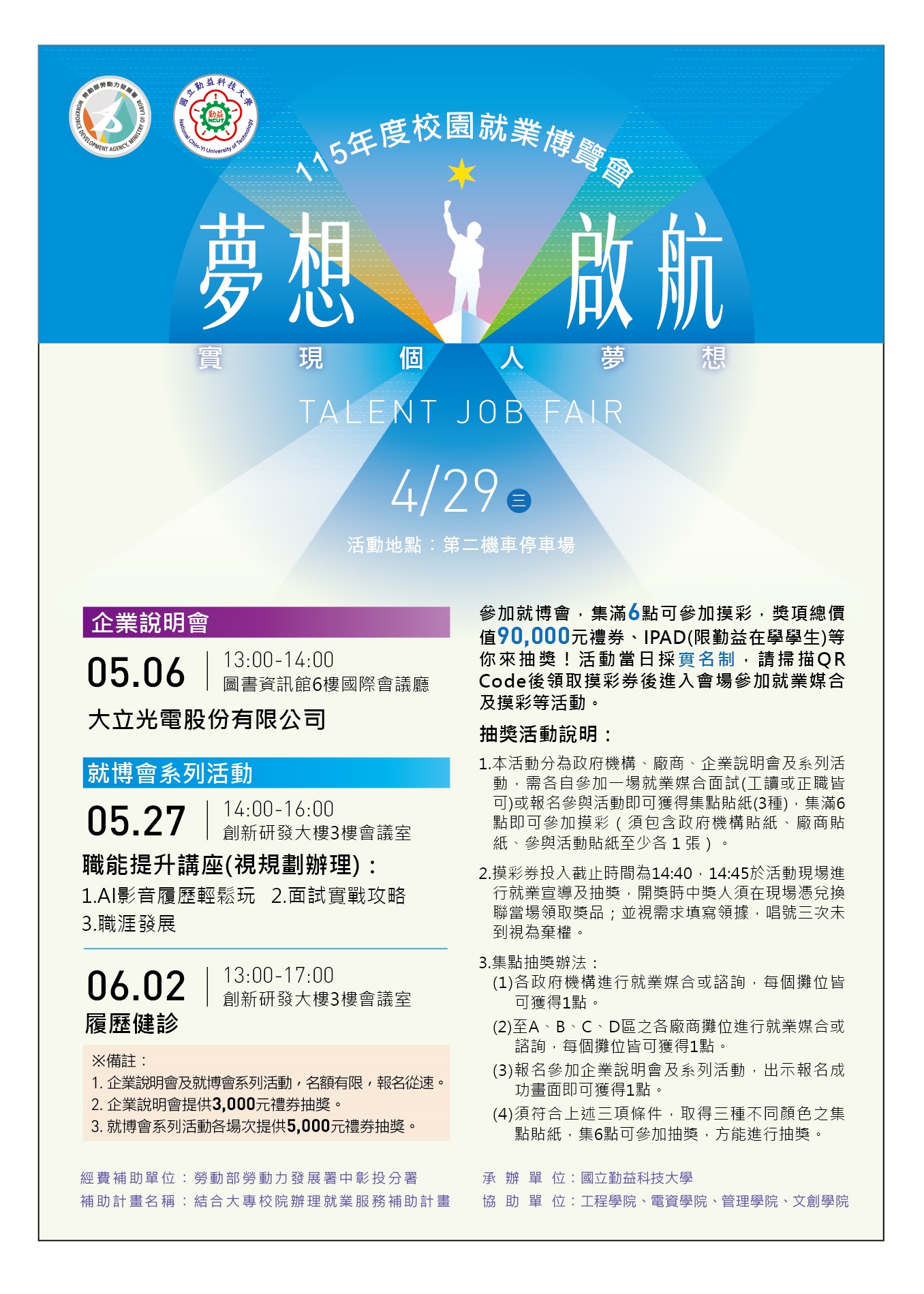 1. 企業說明會及就博會系列活動,名額有限,報名從速。